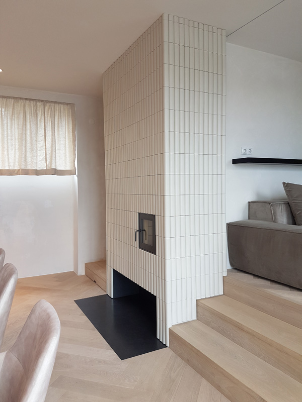 Zentraler Kachelofen mit Lisenenkacheln