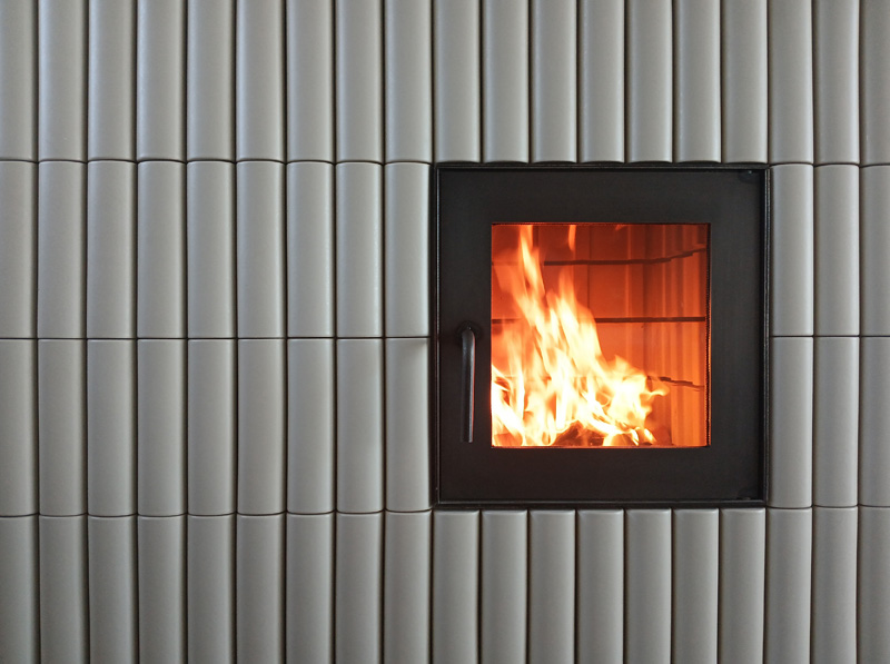 Zentraler Kachelofen mit Lisenenkacheln